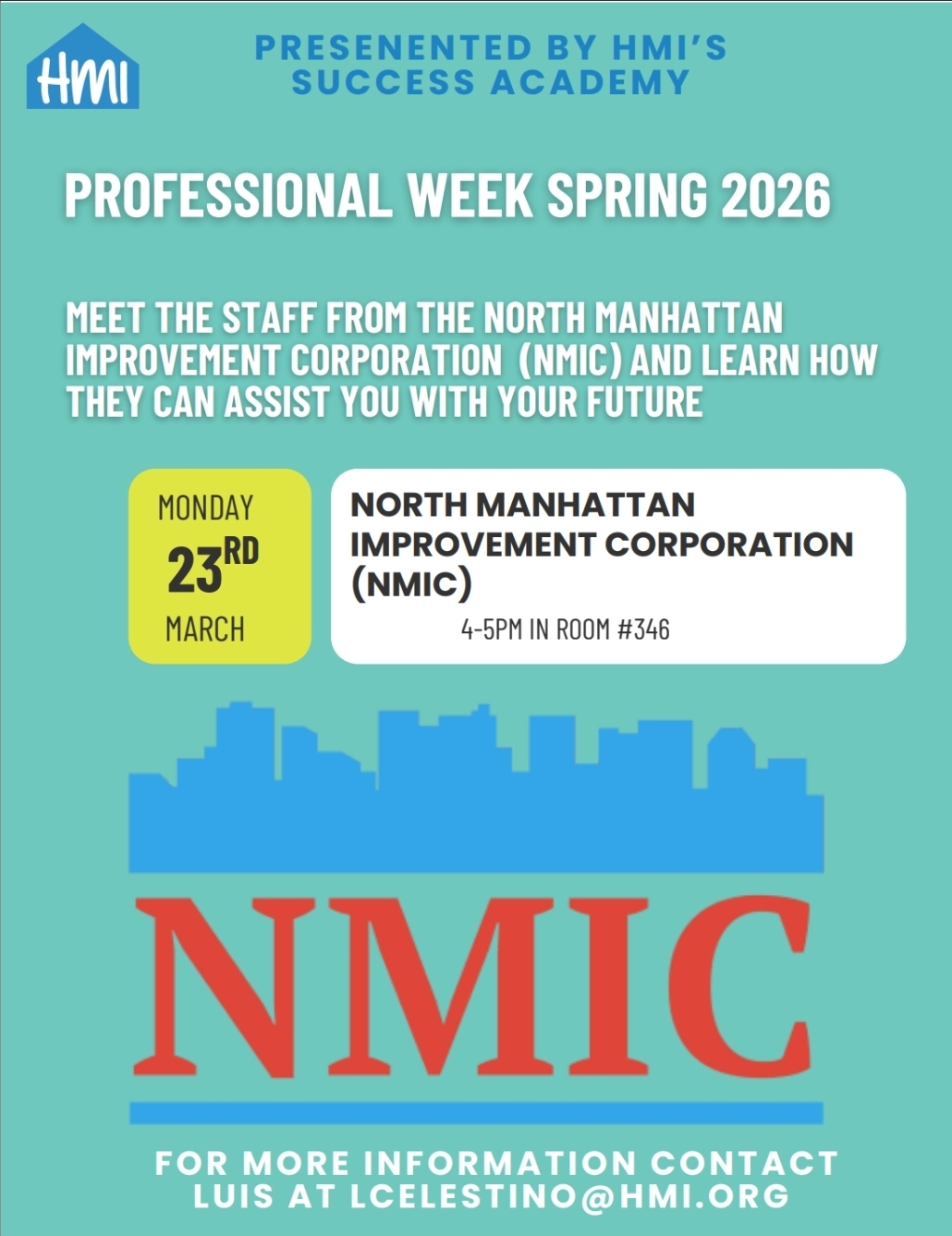Join us Monday through Friday for Success Academy’s Professional Development Week. Don’t miss our daily seminars and activities. Email Luis for more info at lcelestino@hmi.org