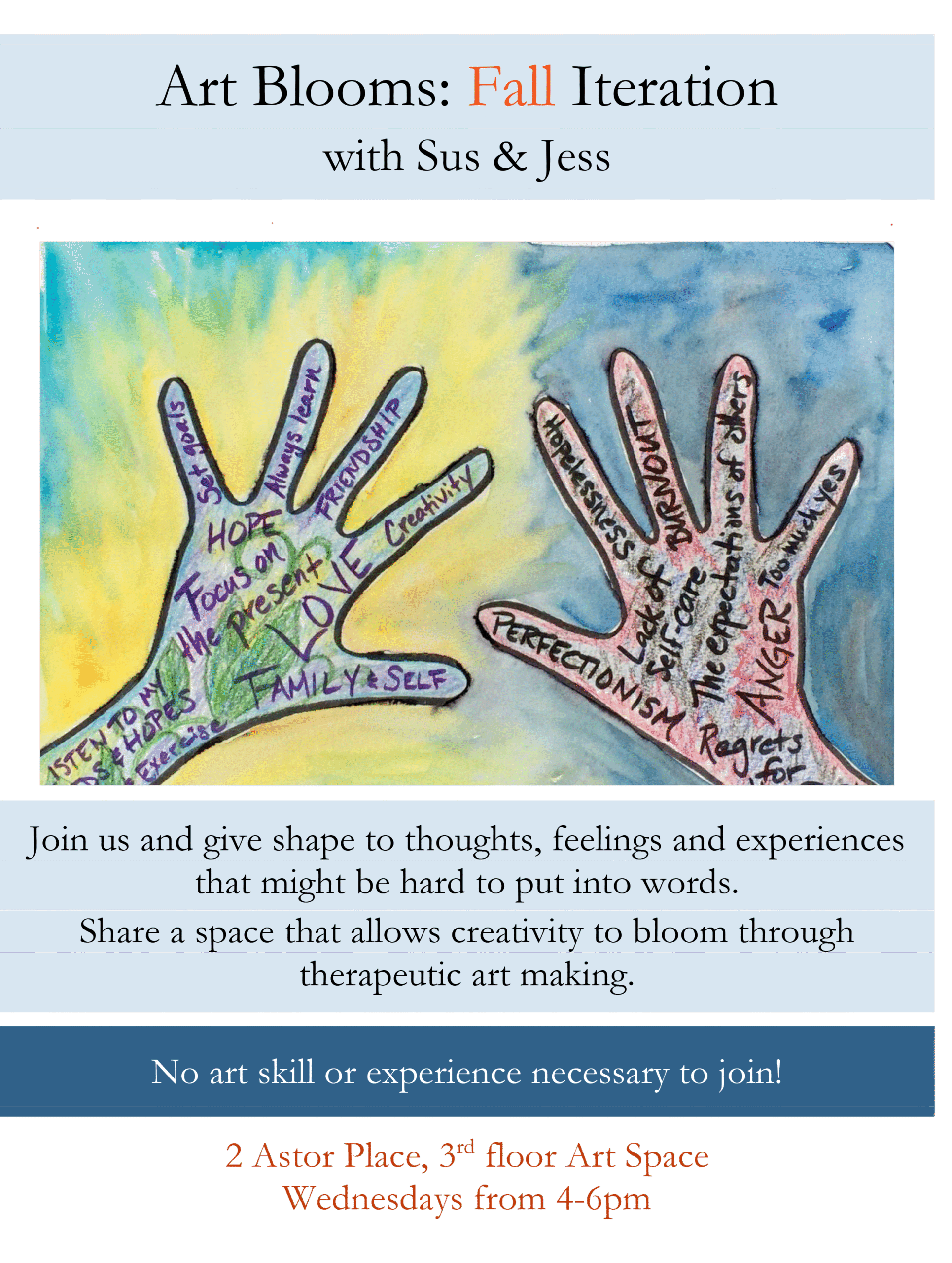 Work through your thoughts and feelings with art at Art [...]
