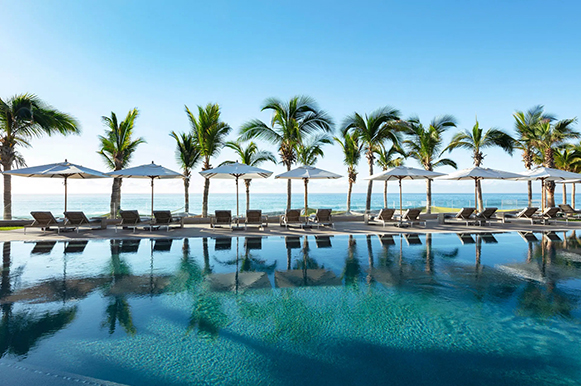Luxurious 7-night stay for two featuring beachfront access, rooftop pools, and spa.