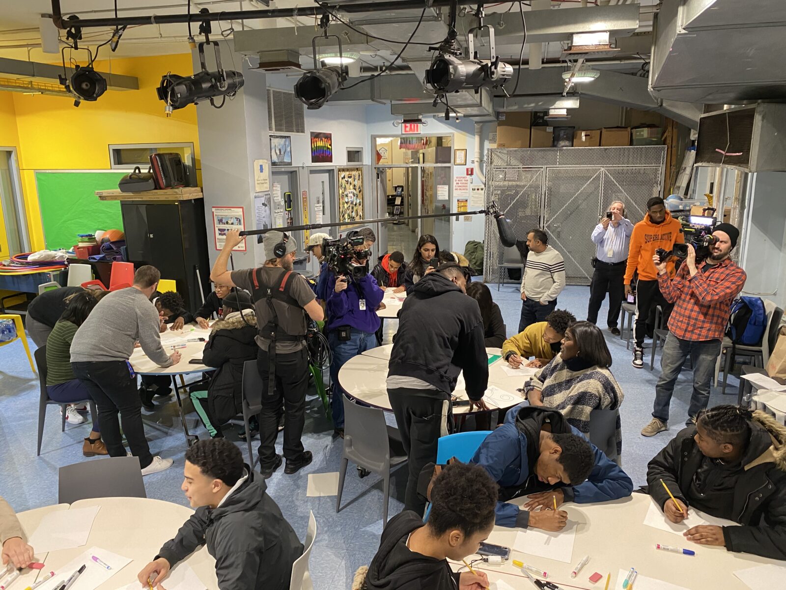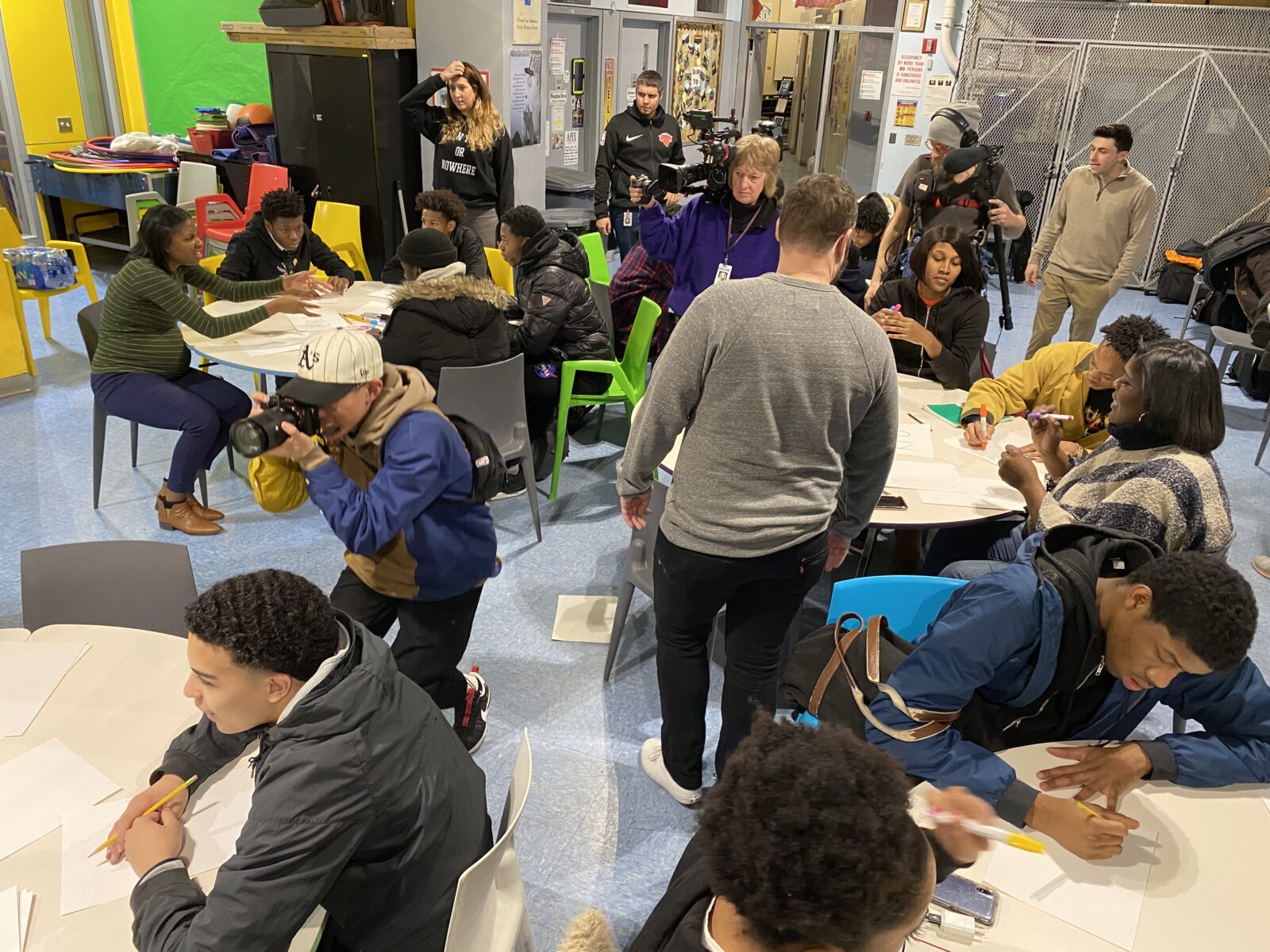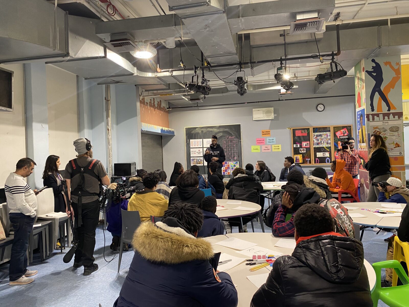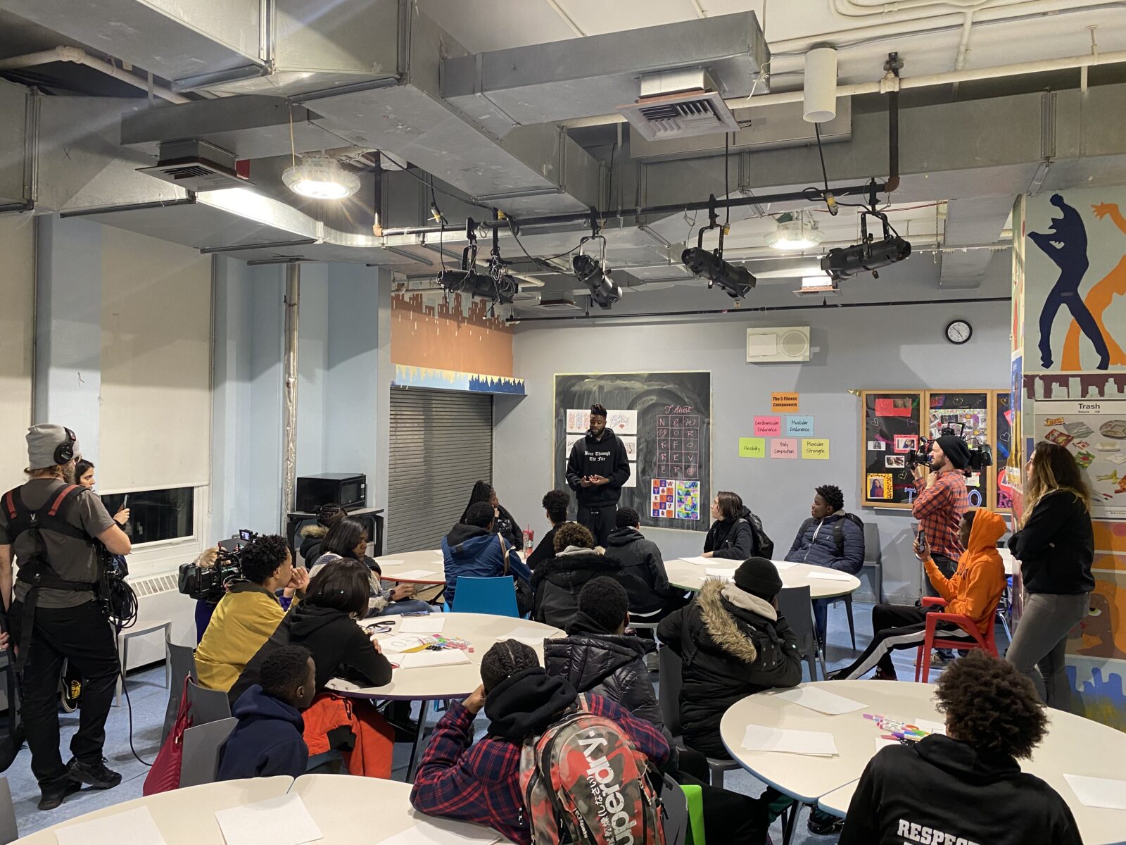 In an open conversation setting, our youth shared their own stories with Reggie and asked questions about how to be leaders in their own communities. Following the conversation, Reggie, in coordination with the Knicks, collaborated with our young people to design the Pride Night T-shirt, which will spell out “New York Forever”.