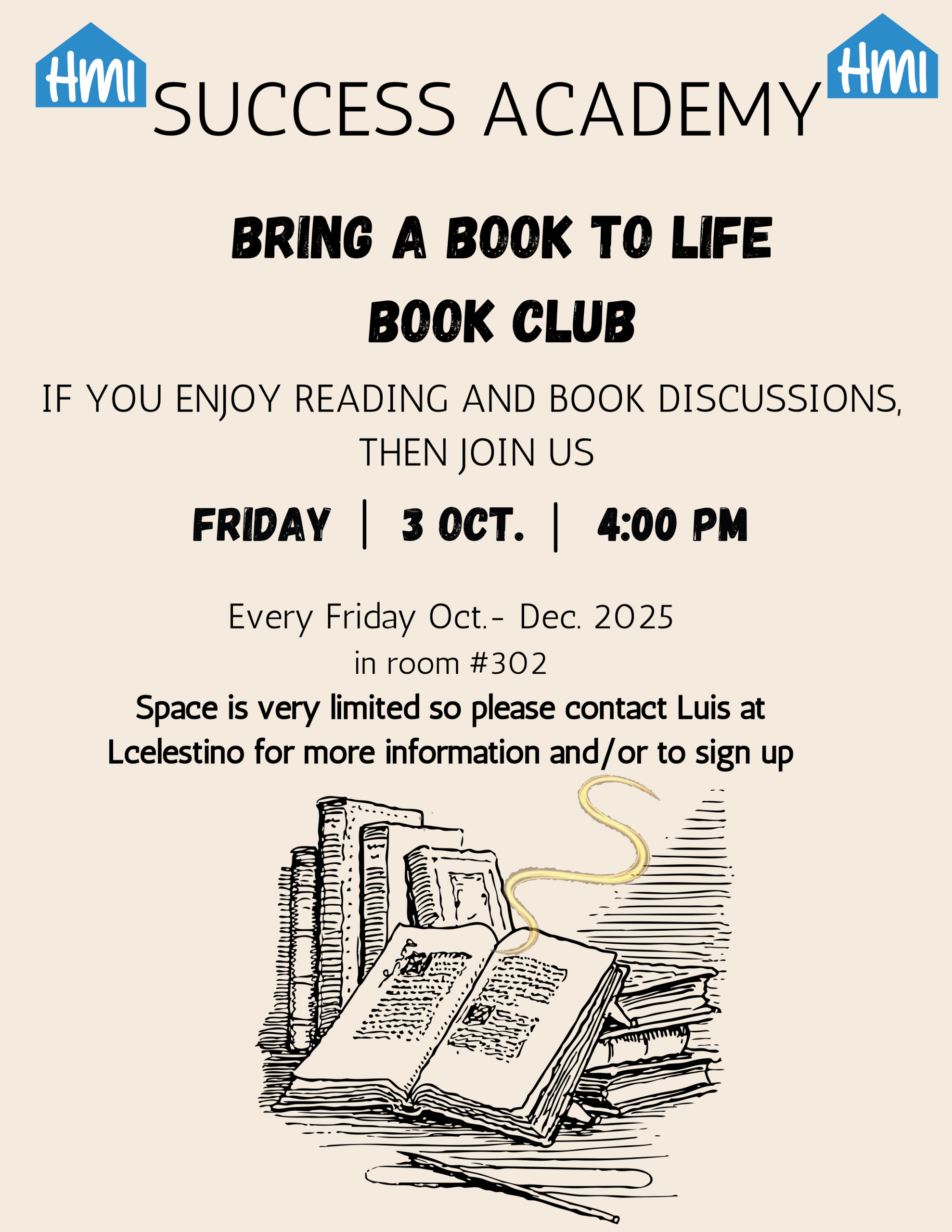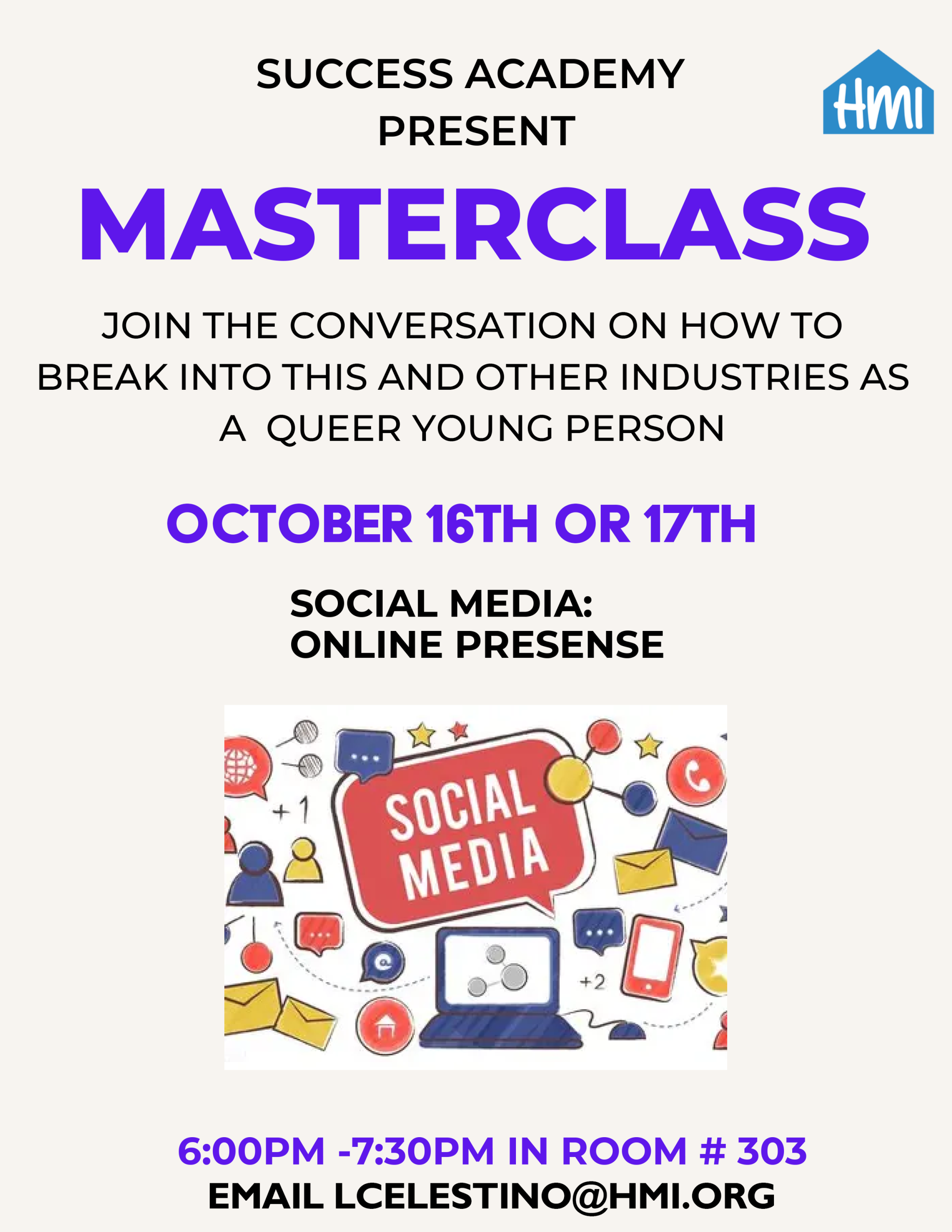 Every friday get assistance with all your housing needs! Room 346, 4-5pm. Email Areyah at asmith@hmi.org