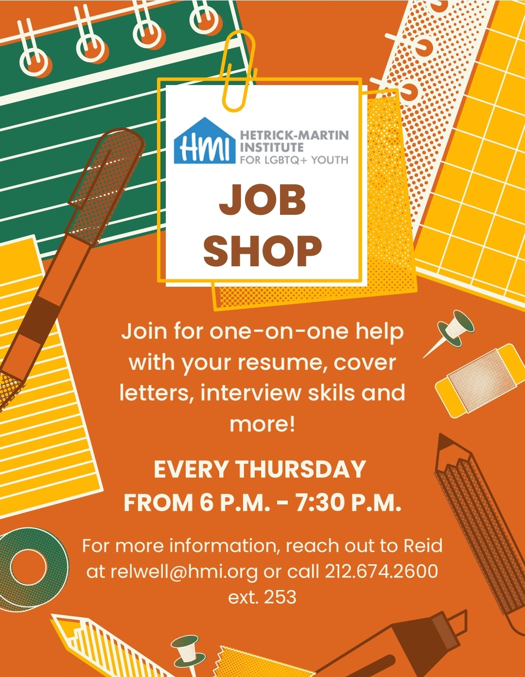 HMI offers a number of paid internships throughout the year. We will post flyers as internships become open to applicants. Applicants must be between 13-24 years old and a current member or willing to become a member of Hetrick-Martin Institute.